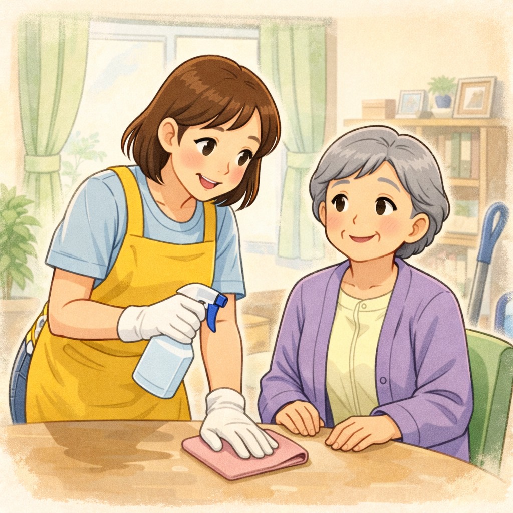 ・家事代行では、ご自宅の身の回りの片付け、掃除、衣類の仕分け、水回りの掃除、庭の掃除など代わりに行います。